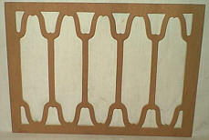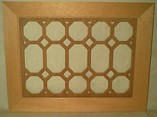 Edison Diamond Disc A-100 Picture is an old grill that had been painted lime green. The grills come with 4 carved wood overlays for the corners. |